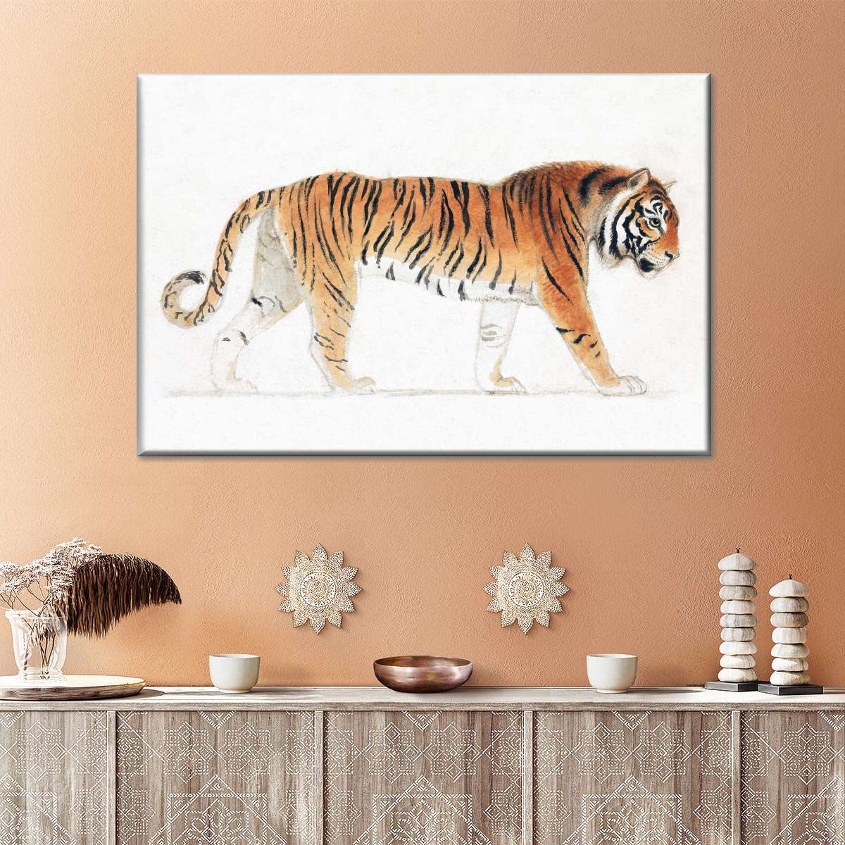 A Tiger In Profile Walking Towards Right Wall Art is a beautiful addition to any decor style. Bring this stunning canvas print into your home to easily refresh your walls and elevate your decor.